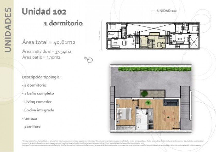 Unidad 102 Interior – 1 dormitorio / 40,44m2 / usd 96.000