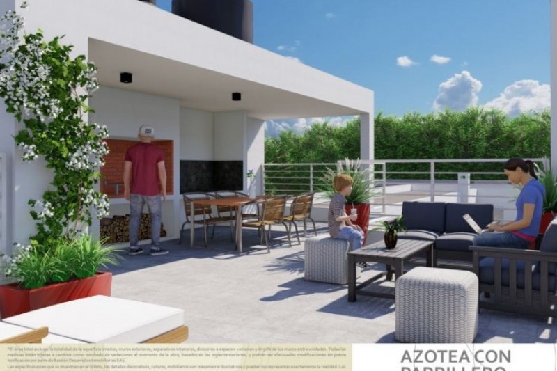 Se accede a luminoso y espacioso living comedor con cocina integrada equipada con anafe y horno eléctrico, muebles de cocina bajo mesada y aéreos en melamínico, mesadas de granito, hall de distribución hacia baño completo y dormitorio. La unidad cuenta con ventilación e iluminación hacia patio central. Terraza de uso exclusivo. Pisos de vinílico de alto tránsito. Previsiones para conexión de Aire Acondicionado.