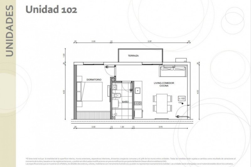 Unidad 002 Interior - 1 dormitorio / 40,14m2 / usd 98.000