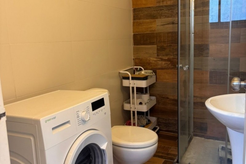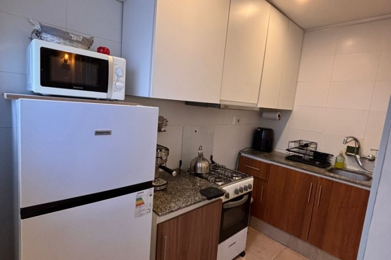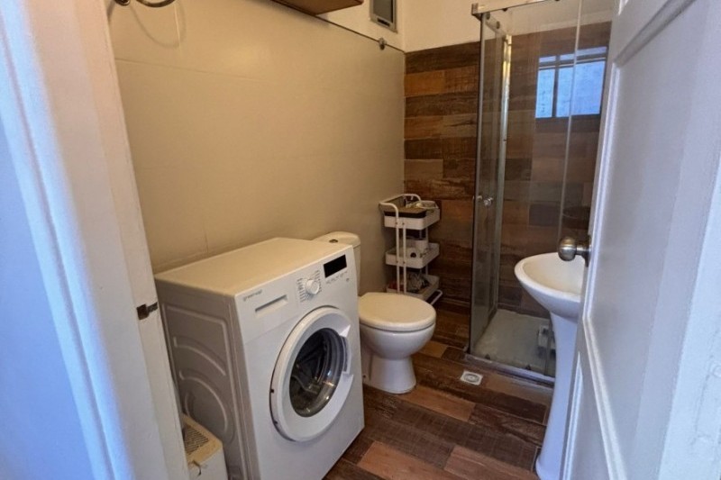 Cocina definida a nuevo con muy buena disponibilidad de guardado en placares alto y bajo, mesada y conexión para lavarropas o lavavajillas.