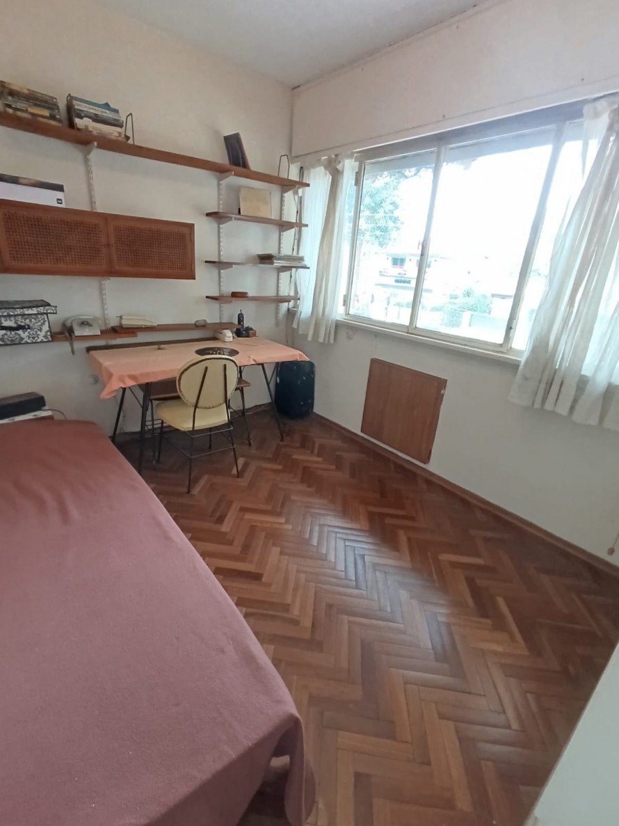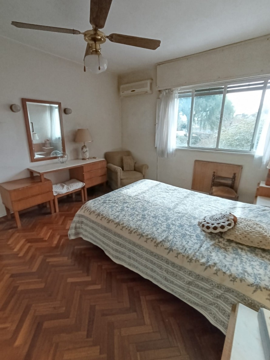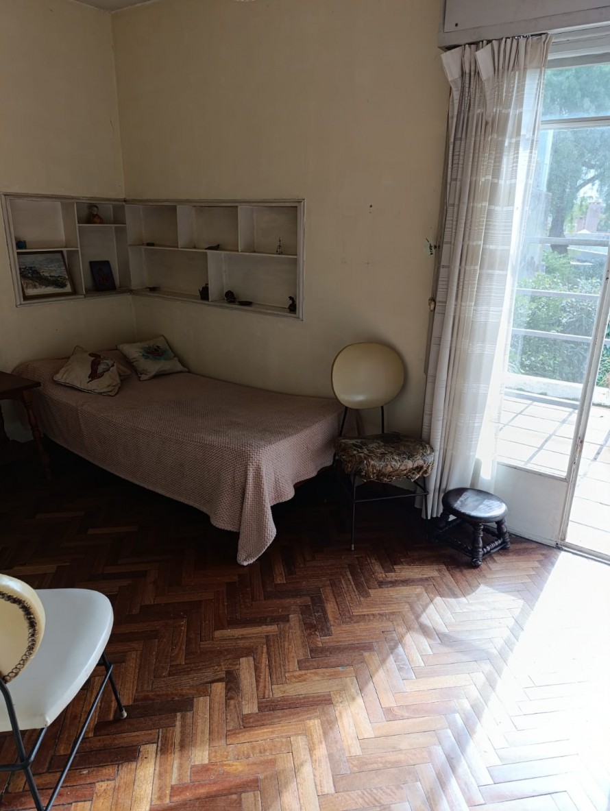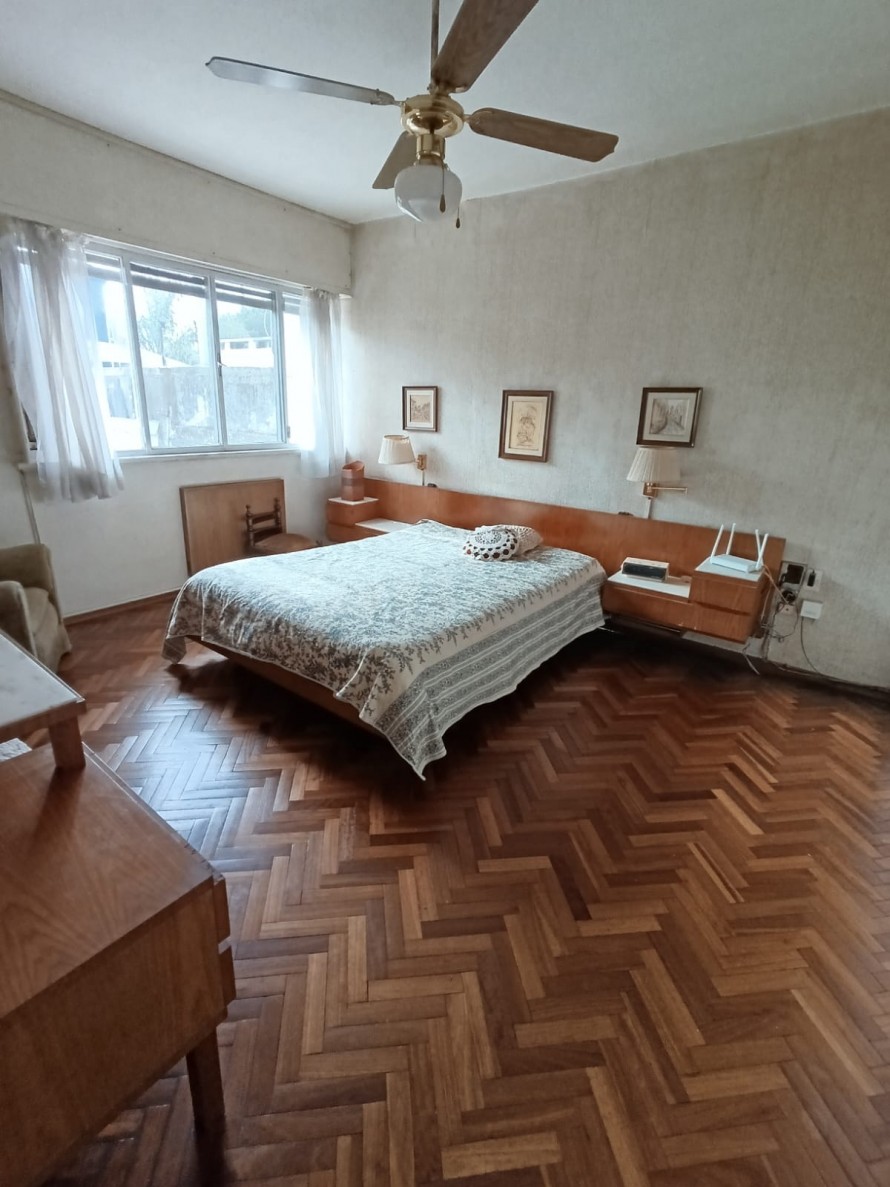 En planta alta se desarrollan tres dormitorios de muy buen tamaño, pisos de parquet en excelente estado de conservación, todos con placares empotrados y excelente ventilación. Dos de ellos tienen vista al frente y el tercero cuenta con salida a terraza al contrafrente. También en esta planta hay un baño completo. Balcón con vista al frente.