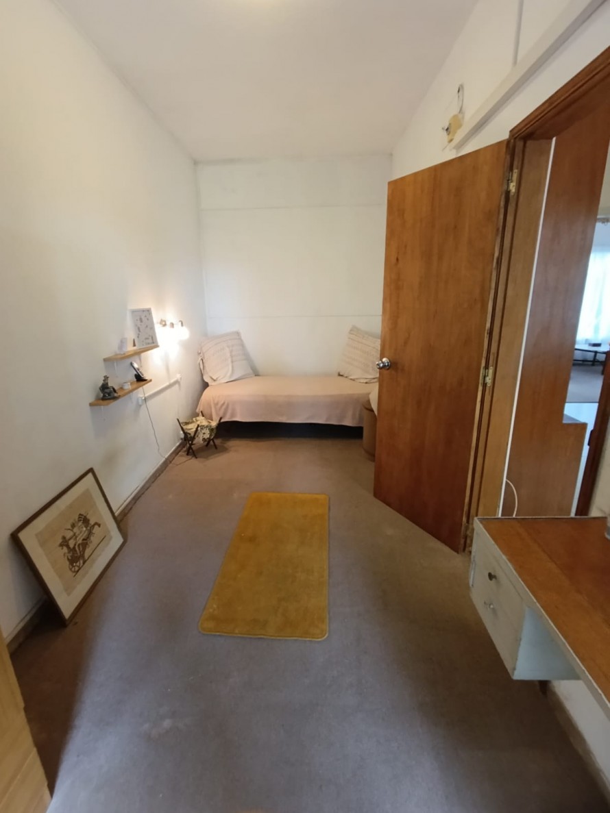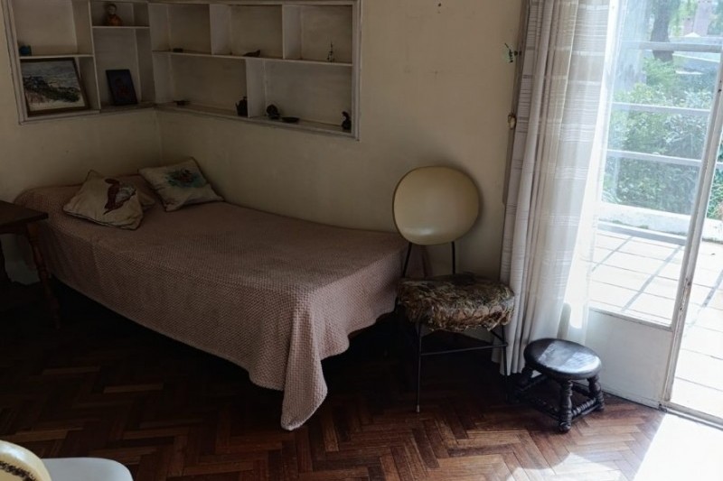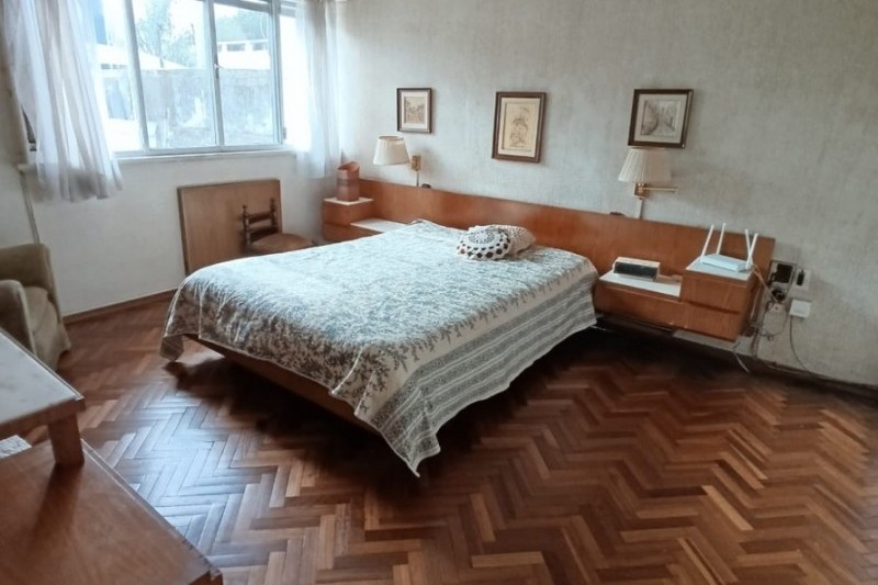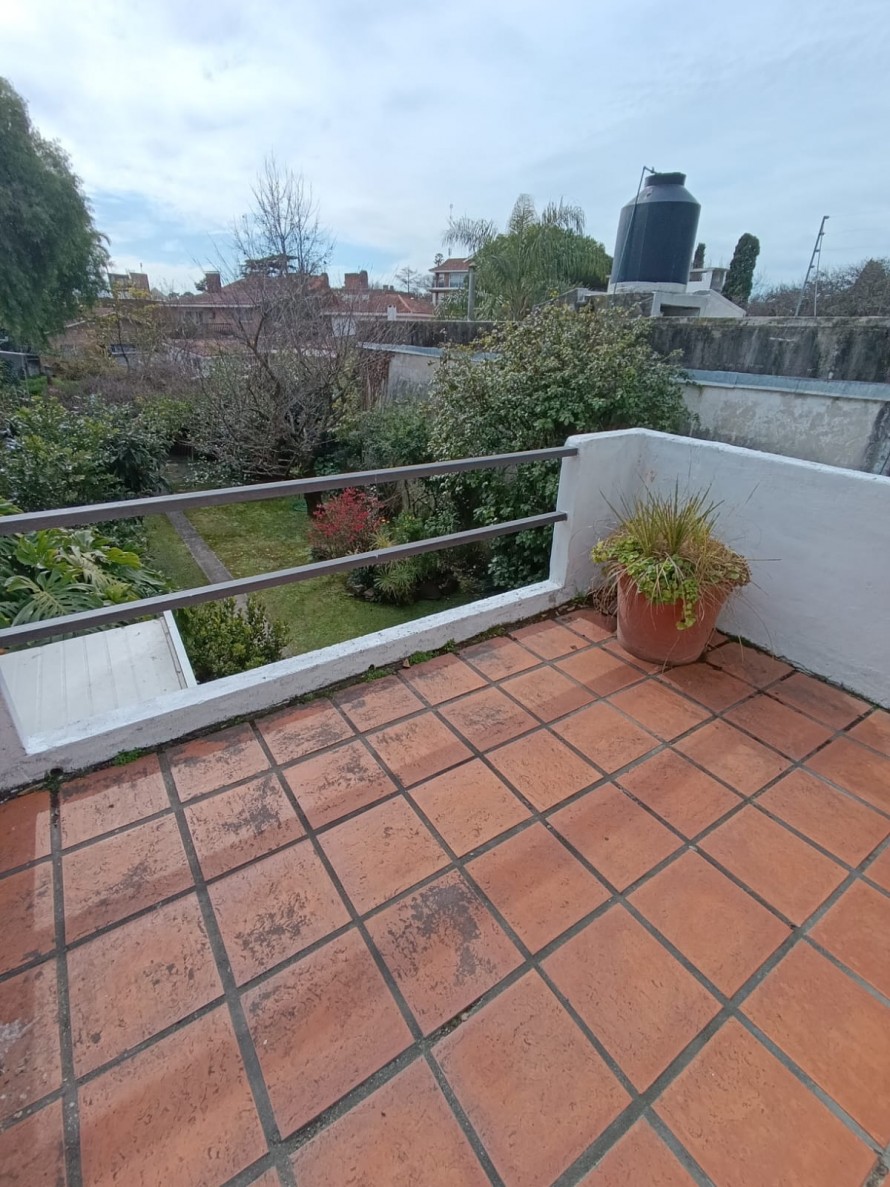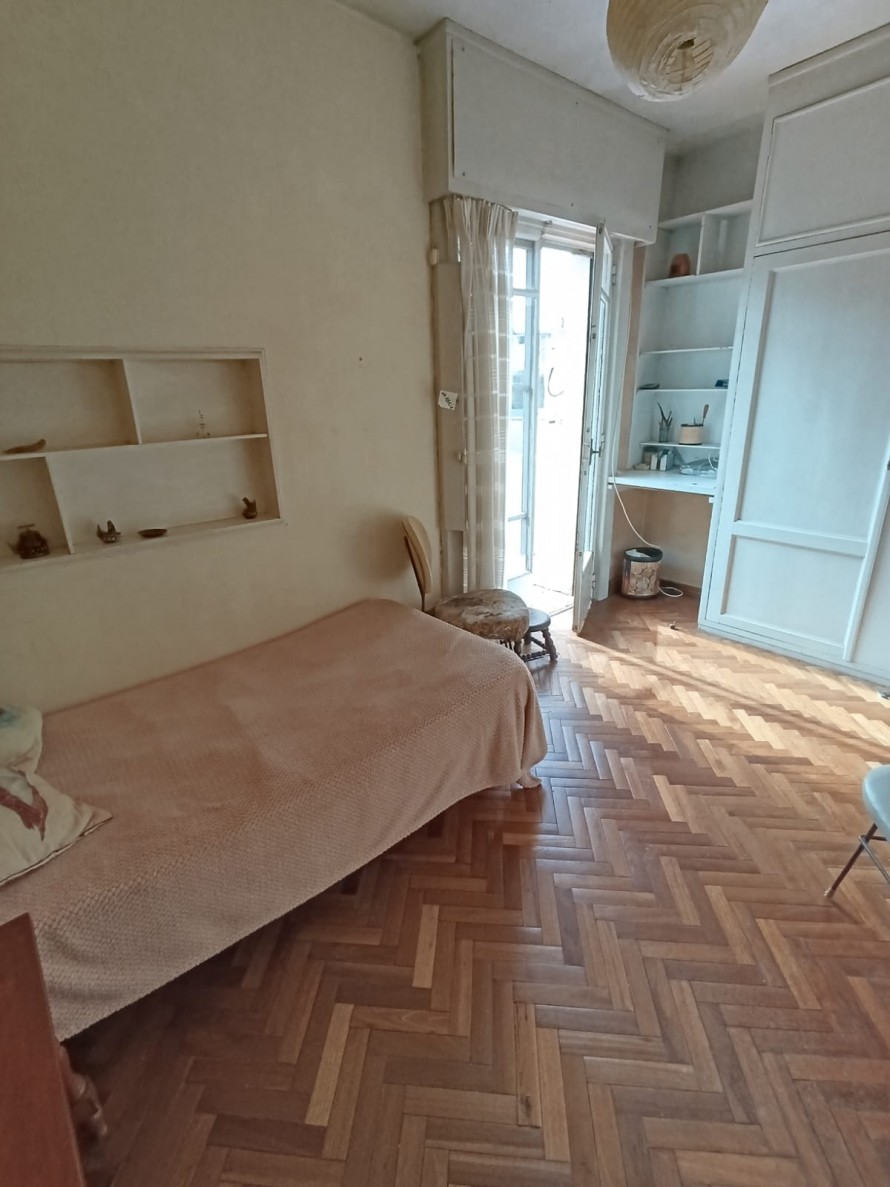 En planta alta se desarrollan tres dormitorios de muy buen tamaño, pisos de parquet en excelente estado de conservación, todos con placares empotrados y excelente ventilación. Dos de ellos tienen vista al frente y el tercero cuenta con salida a terraza al contrafrente. También en esta planta hay un baño completo. Balcón con vista al frente.