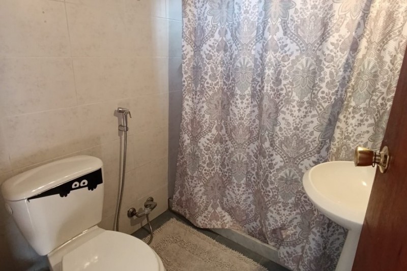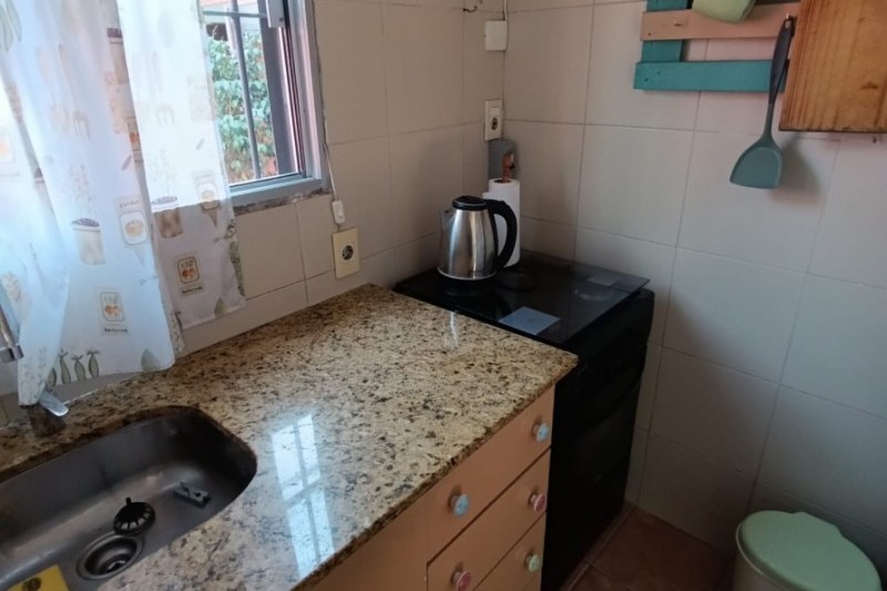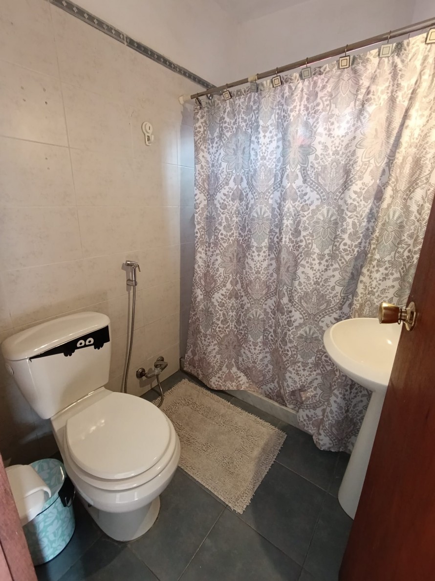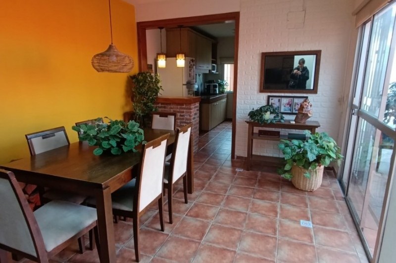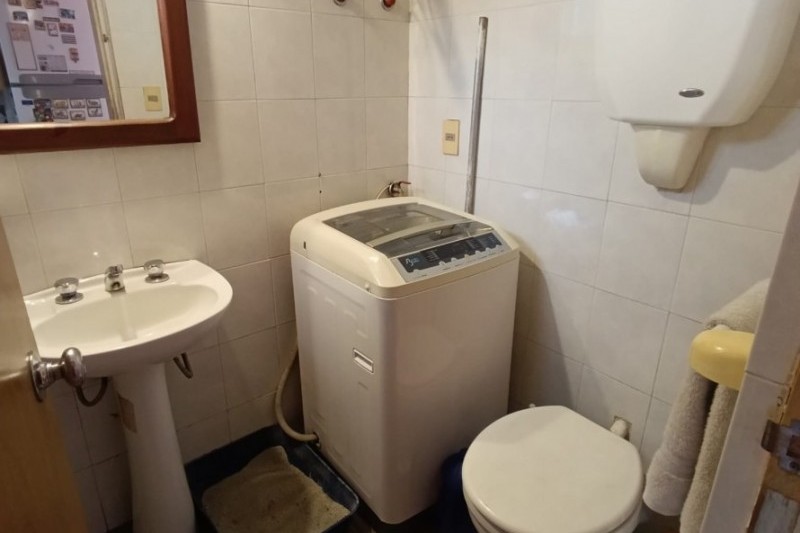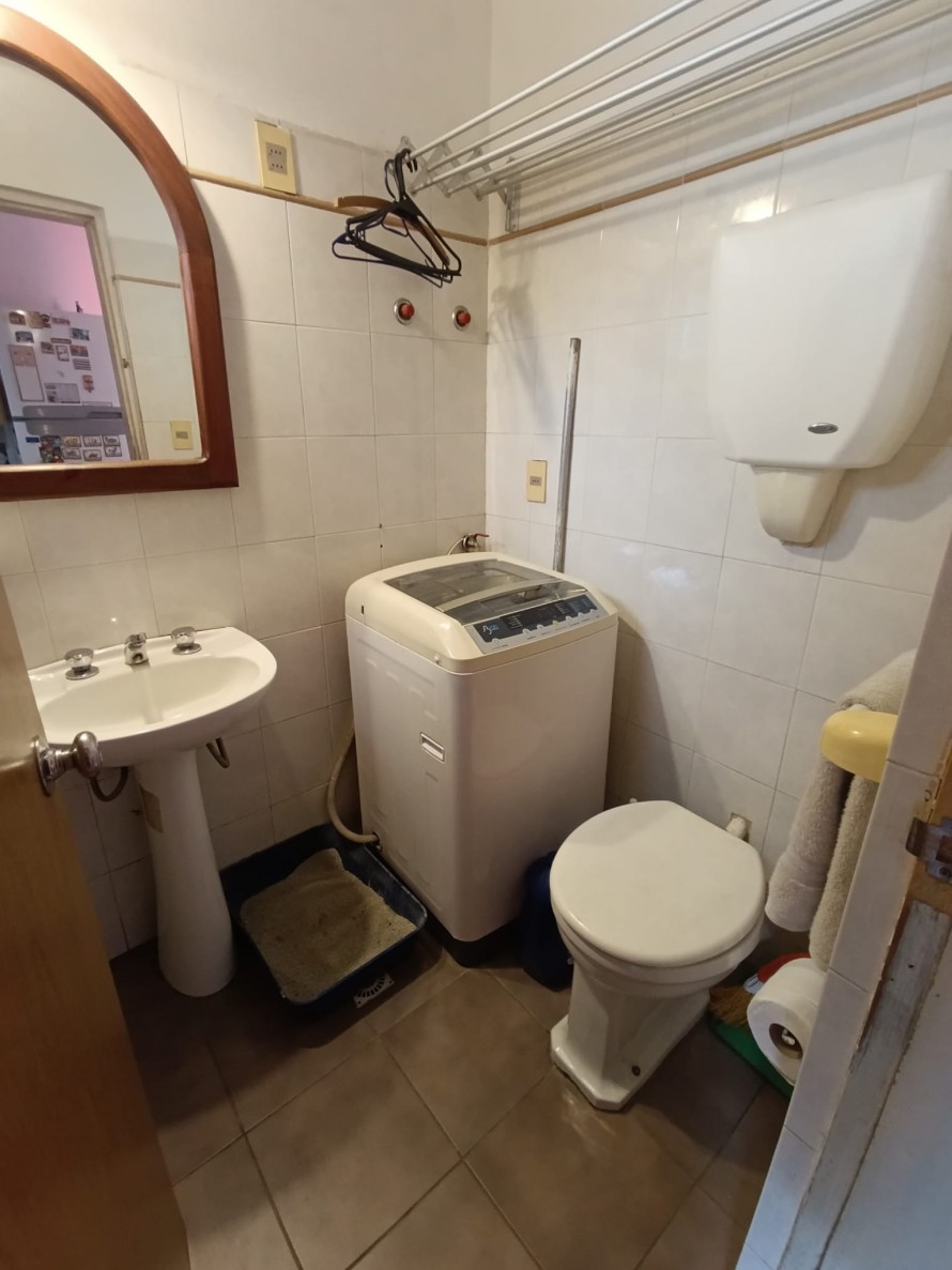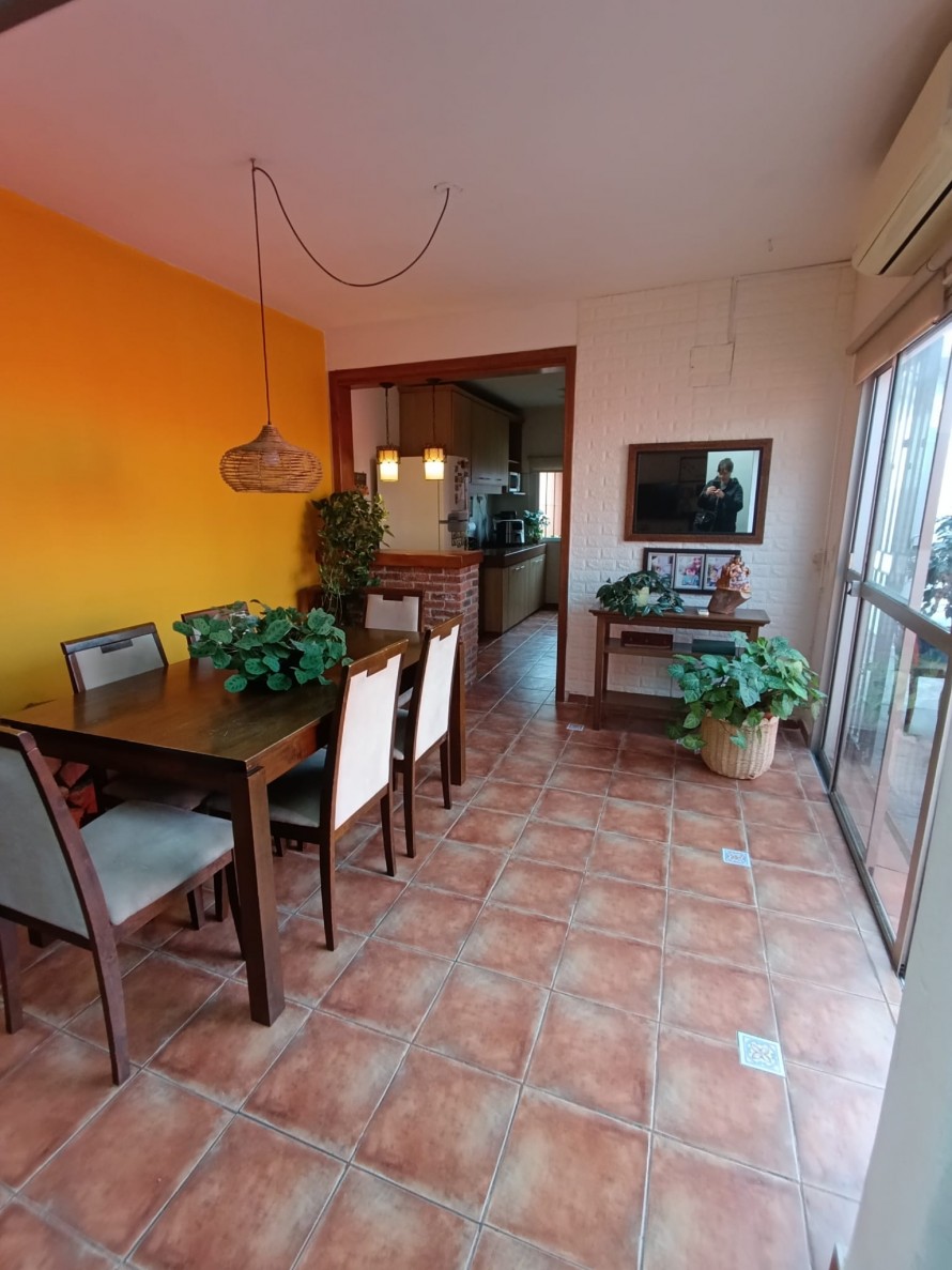 Cocina semi integrada al comedor mediante barra desayunadora, equipada con placares sobre y bajo mesada de buena capacidad.