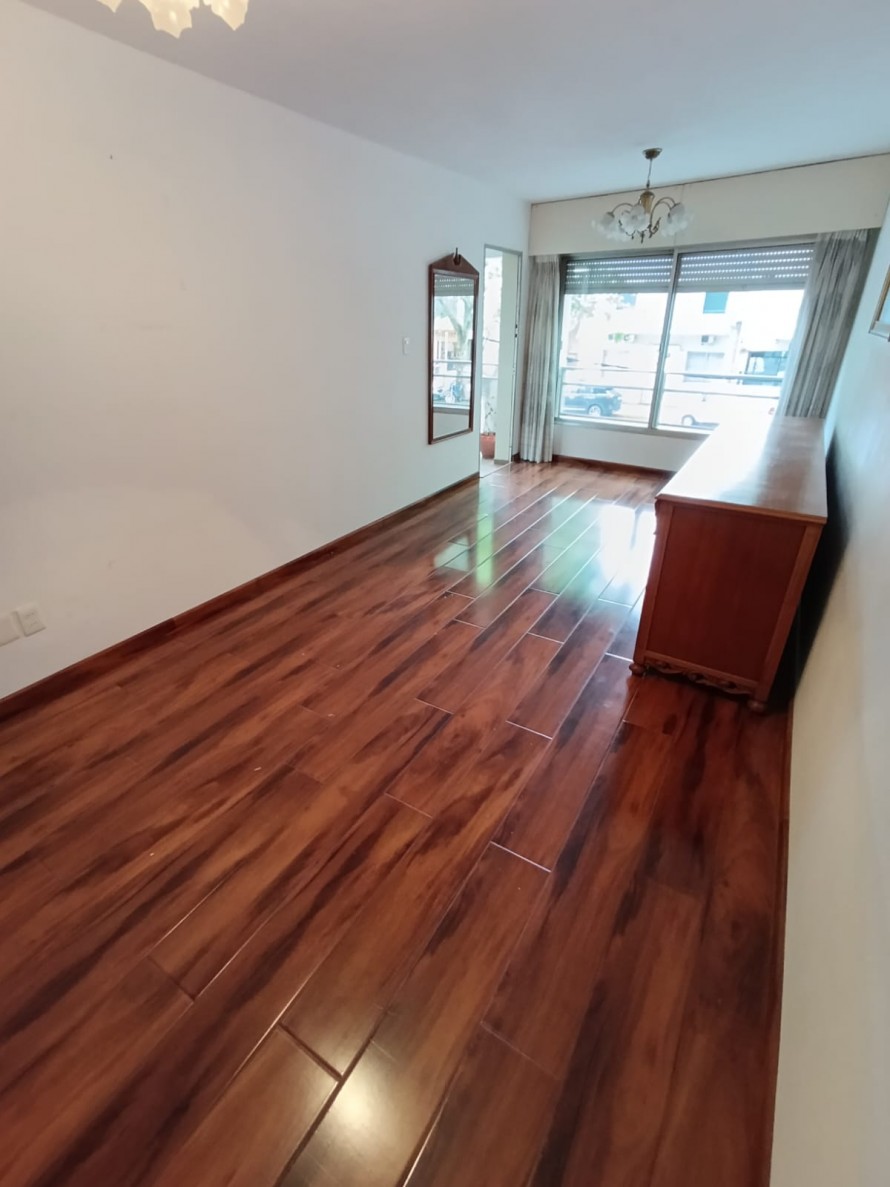 Al ingresar, un hall recibidor conduce al living con vista al frente y salida a balcón. El dormitorio principal, también al frente, cuenta con baño en suite, placares empotrados y cortina de PVC automatizada. El segundo dormitorio se orienta al contrafrente y dispone de placard empotrado.