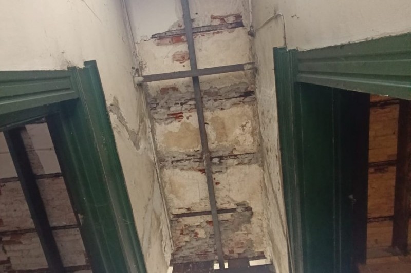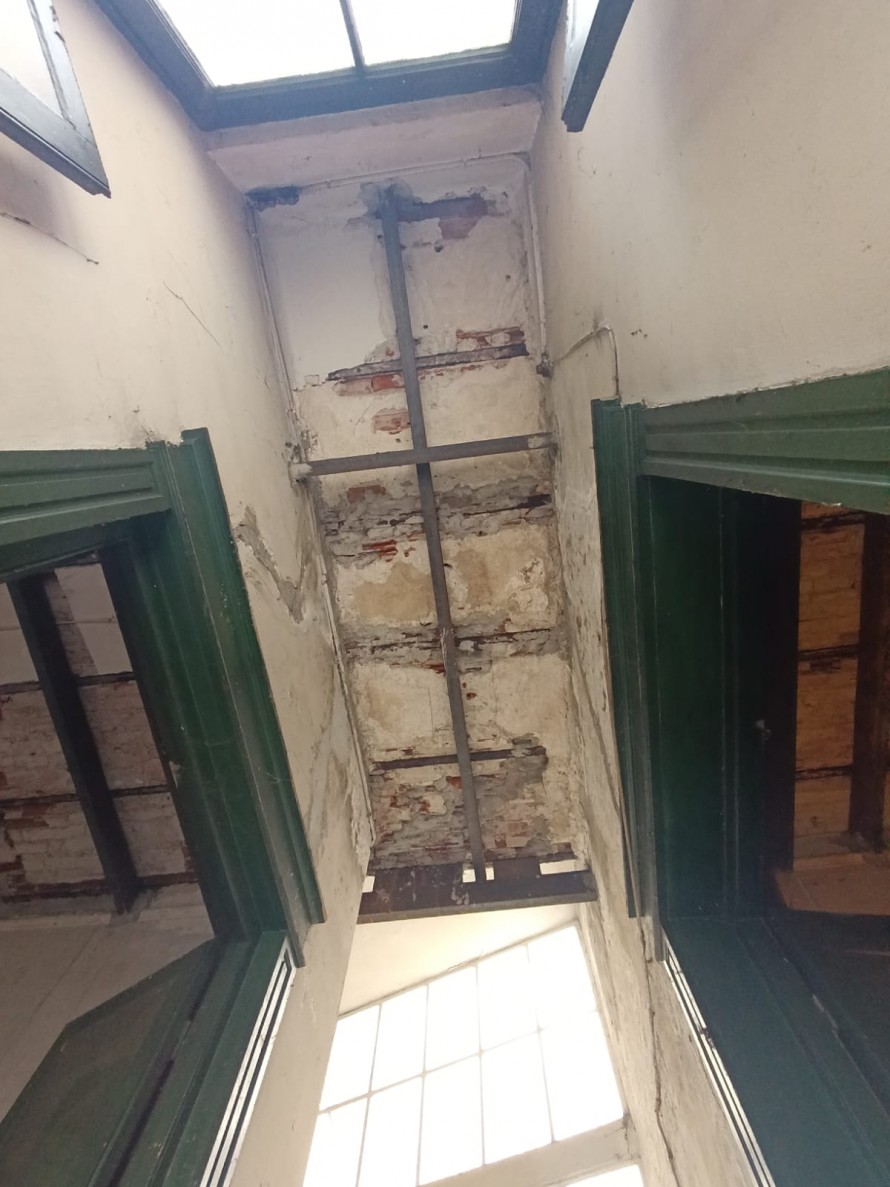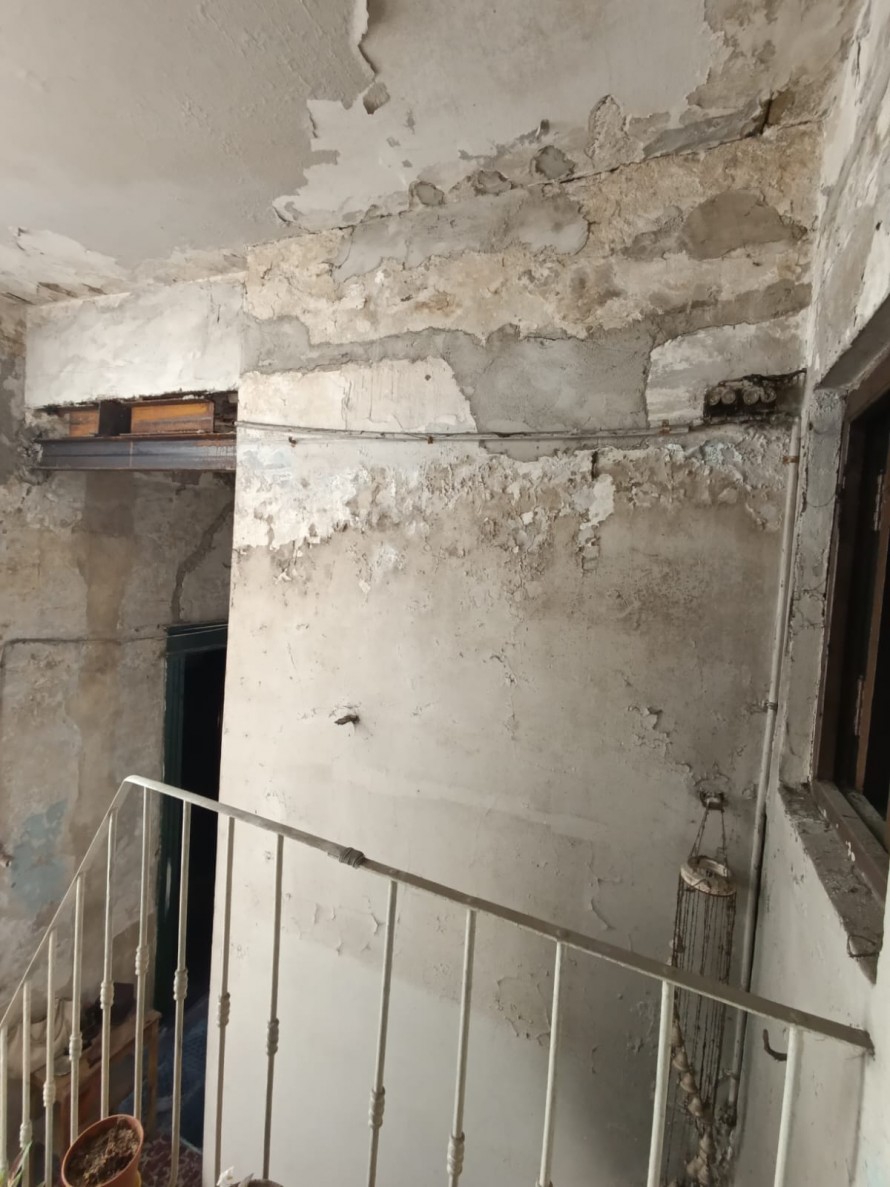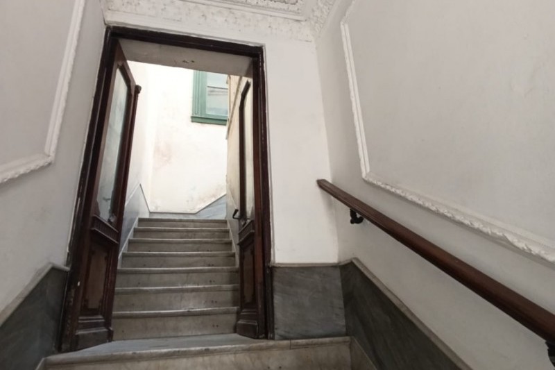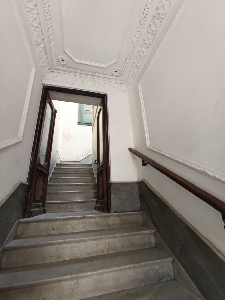 La vivienda completamente independiente, ubicada en el primer piso y accesible por escalera, presenta un amplio hall recibidor y distribuidor con claraboya, en buen estado general.