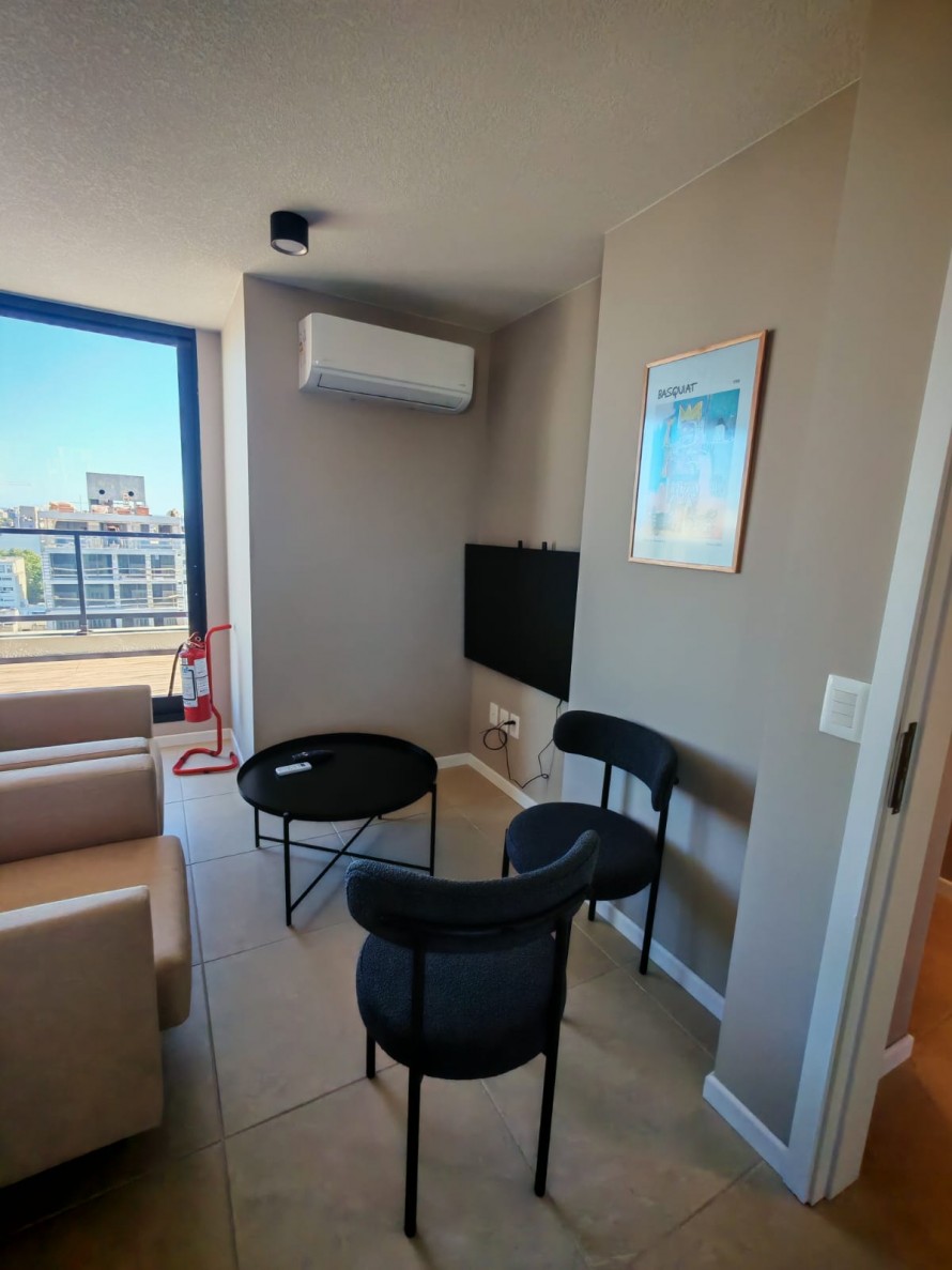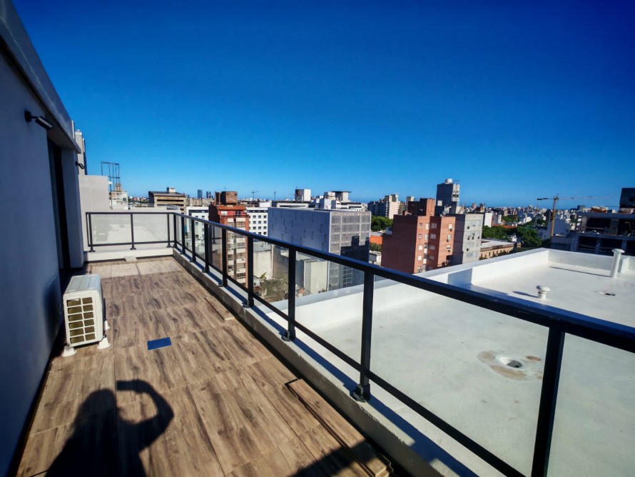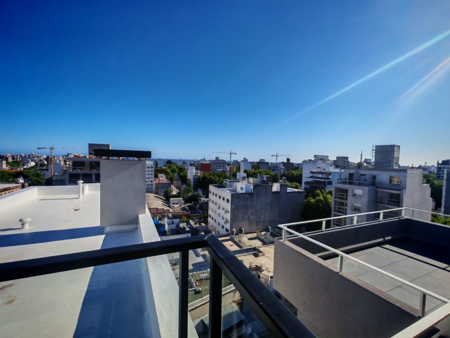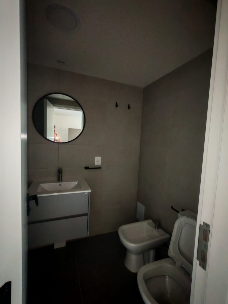 Dormitorio con salida a terraza y baño completo. Cuenta con instalación para calefón y lavarropa. La puerta del apartamento tiene cerradura digital por código o huella.