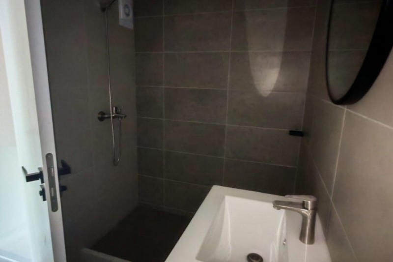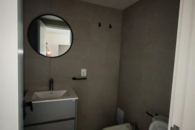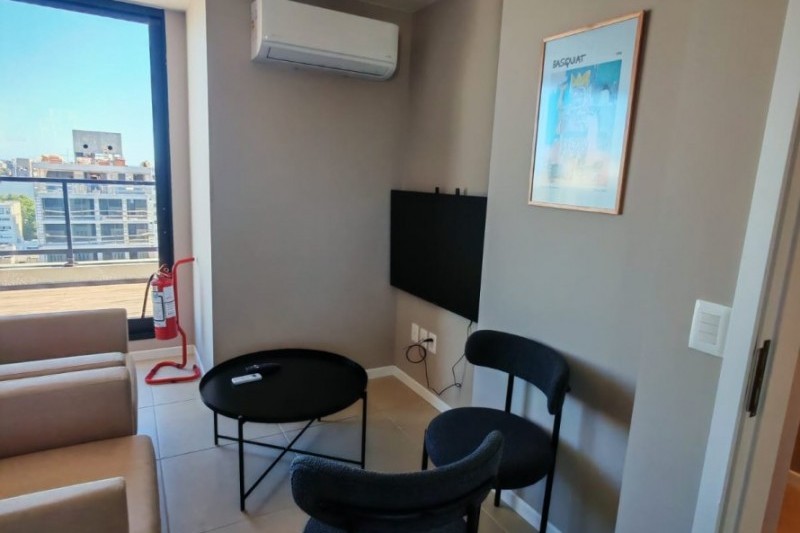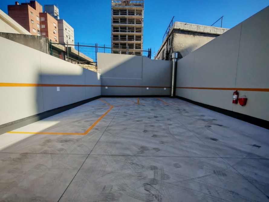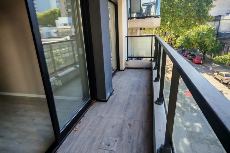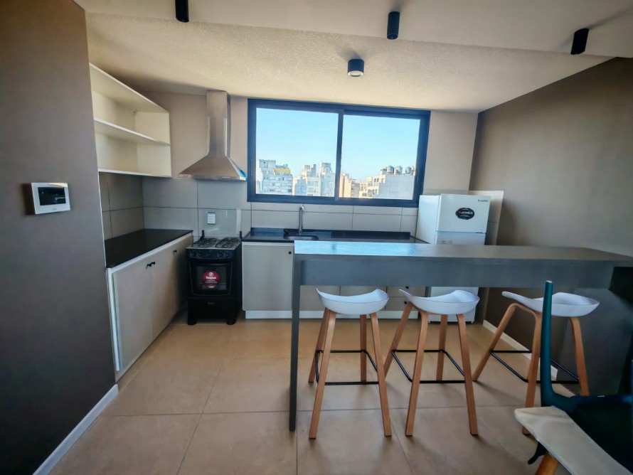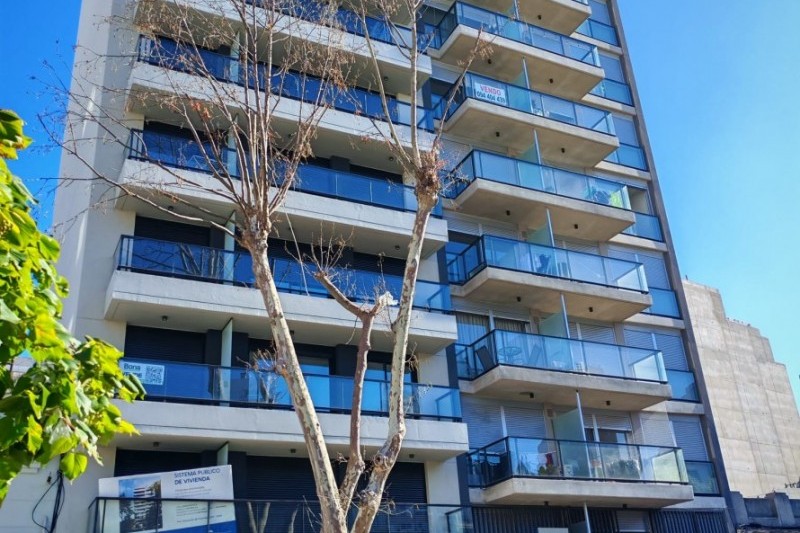 Dormitorio con salida a terraza y baño completo. Cuenta con instalación para calefón y lavarropa. La puerta del apartamento tiene cerradura digital por código o huella.