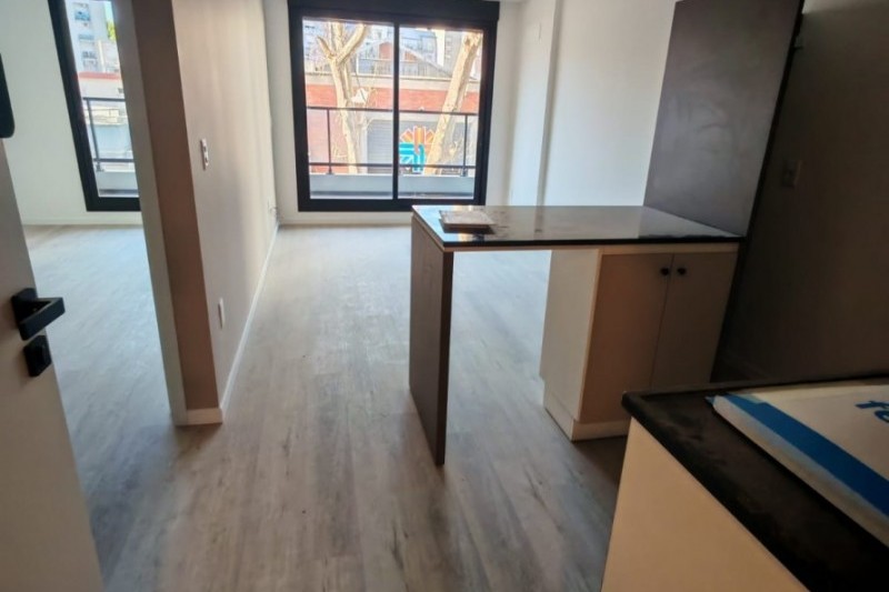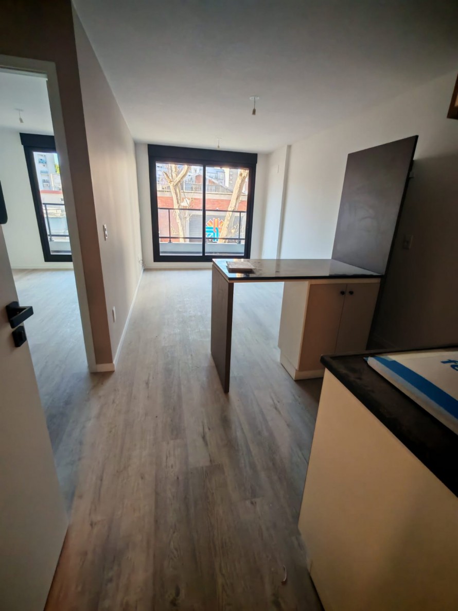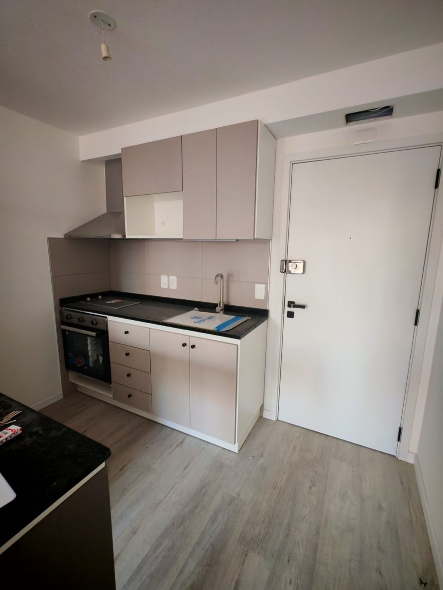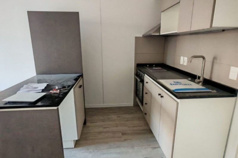 A estrenar, sobre la calle Ana Monterroso de Lavalleja, 2do piso al frente, Apartamento muy luminoso y soleado, se accede linda terraza, living comedor con cocina integrada con placares sobre y bajo mesada equipada con campana, anafe y horno eléctrico.