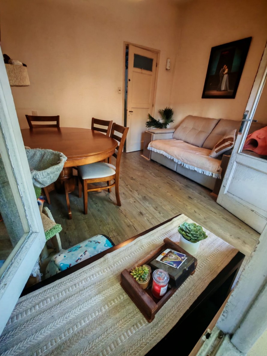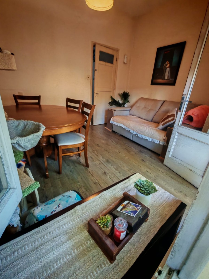 Actualmente está distribuido con un dormitorio y living comedor al frente.