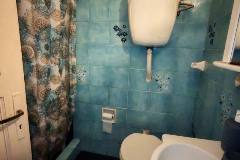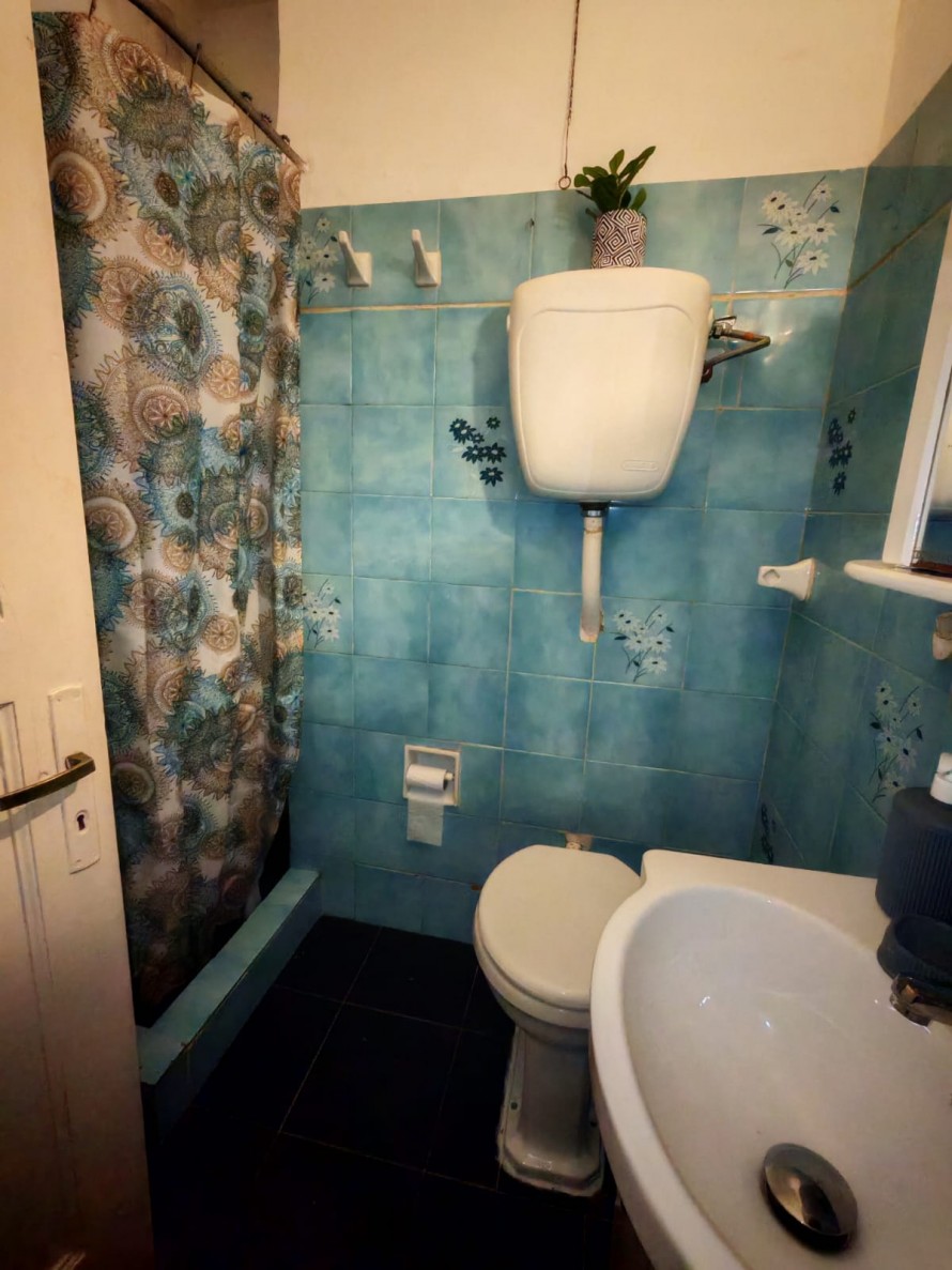 Baño de época con conexión para lavarropas y ventilación a ducto.