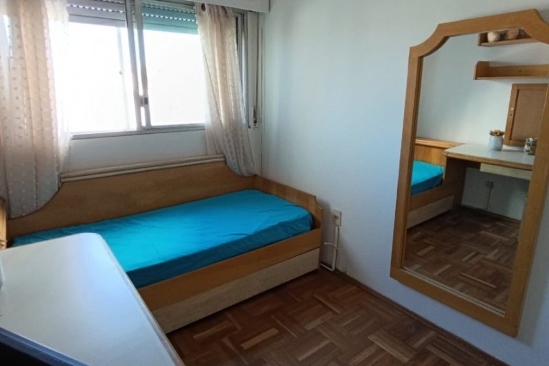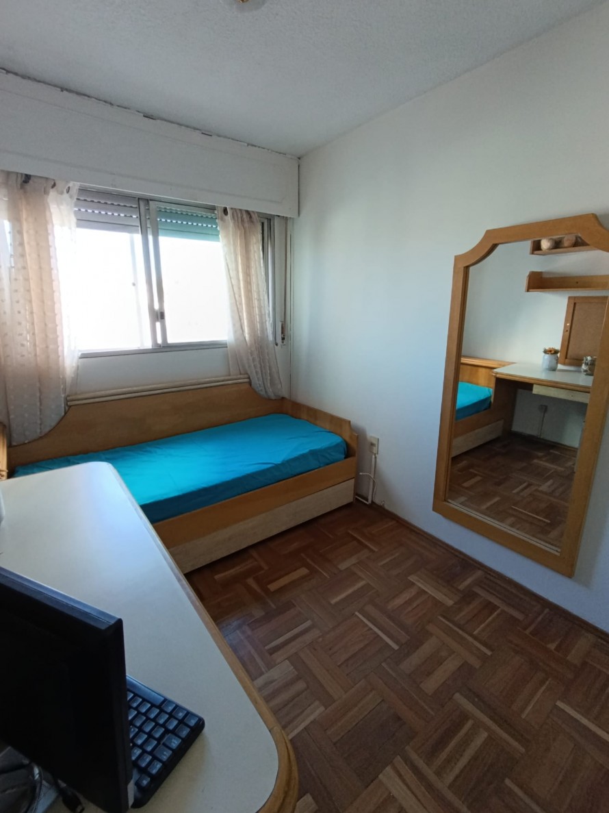 Al ingresar encontramos cocina definida con muebles de madera, acceso a terraza lavadero cerrado con conexión a lavarropas. Luminoso living-comedor con aire acondicionado, salida directa a balcón cerrado con vistas despejadas al frente, el cual permite disfrutar del exterior y de la vista a la avenida y edificios cercanos. El apartamento cuenta con tres dormitorios, el principal orientado hacia el frente, con placard empotrado. Dormitorios orientados hacia el contrafrente ambos con doble ventana y placard empotrado, uno de ellos con aire acondicionado. Dispone de un baño completo.